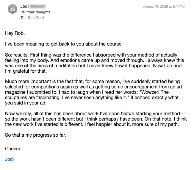 And the results? I achieved a repeatable process for breakthrough-level work—creative ideas that felt more “me” than anything I'd made before, and that actually moved people.