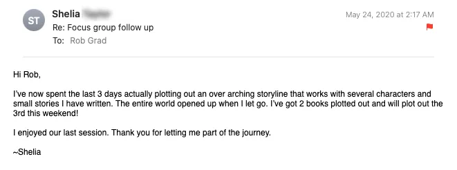 ✍️ Help a writer overcome 3 years of writer’s block on a book that "didn’t want to be written"—finally plotting out the storyline, defining the characters, and laying out 2 sequels.